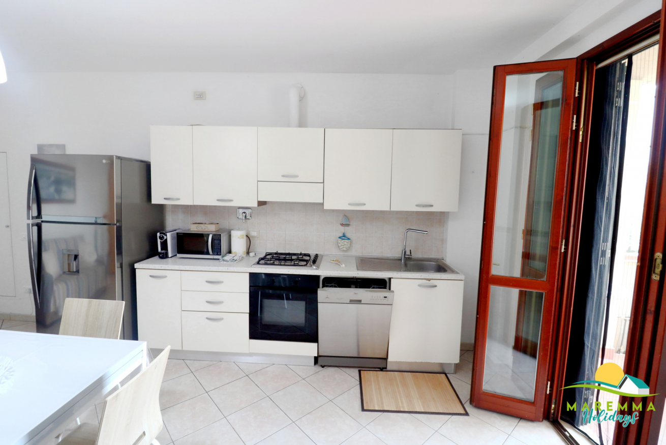 Delizioso appartamento in zona tranquilla di Follonica, a soli 600 metri dal mare, composto da camera matrimoniale, cucina attrezzata , lavatrice, lavastoviglie ,wi fi e terrazza pranzabile. perfetto per famiglie .
