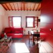 Un ampio e luminoso soggiorno con un angolo cottura completamente attrezzato, ideale per preparare deliziose cene toscane. Il soggiorno dispone anche di un comodo divano letto singolo, perfetto per un ospite aggiuntivo.